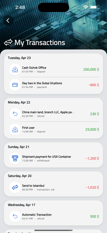 View your account balance and transaction history with ease. Send money securely within the Quba network.